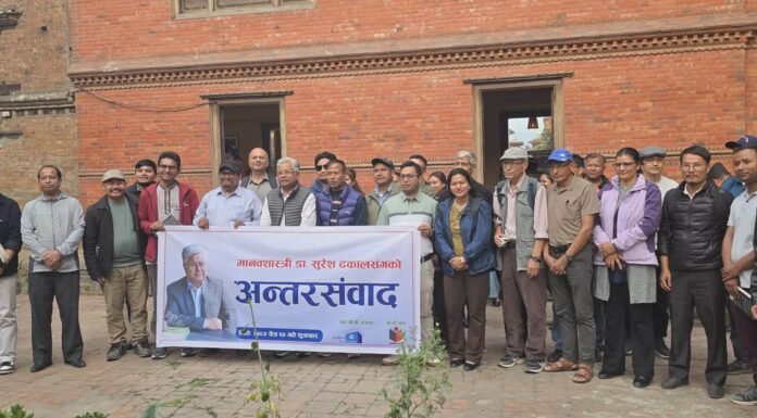 भक्तपुर । मानवशास्त्री डा. सुरेश ढकालसँग इतिहास, मानवशास्त्र, संस्कृति तथा समसामयिक समाजका बहुआयामिक विषयमा केन्द्रित अन्तरसंवाद कार्यक्रम भक्तपुरमा सम्पन्न भएको छ।