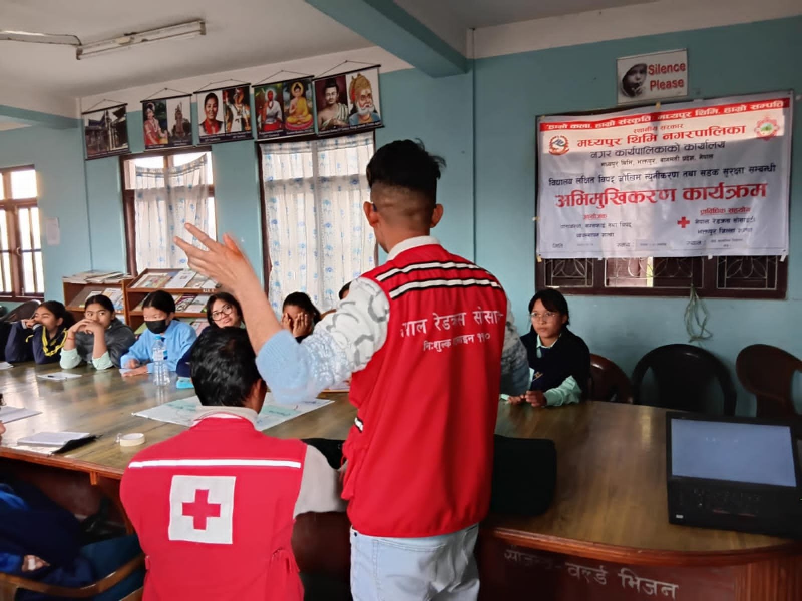 भक्तपुर । नेपाल रेडक्रस सोसाइटी भक्तपुर जिल्ला शाखा र मध्यपुर थिमी नगरपालिका वातावरण सरसफाई तथा विपद् व्यवस्थापन शाखाको संयुक्त आयोजनामा विद्यालय स्तरीय जोखिम न्यूनीकरण तथा सडक सुरक्षा सम्बन्धी अभिमुखीकरण कार्यक्रम सम्पन्न भएको छ।