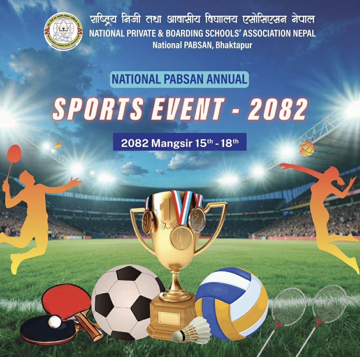 नेसनल प्याव्सन भक्तपुरको आयोजनामा अन्तर विद्यालय खेलकूद प्रतियोगिता–२०८२ यही मंसिर १५ गतेदेखि सुरु हुँदैछ । सदस्य विद्यालयहरूबीच आयोजना हुने प्रतियोगितामा विभिन्न रमाइलो तथा प्रतिस्पर्धात्मक खेलहरू समावेश गरिएको छ ।