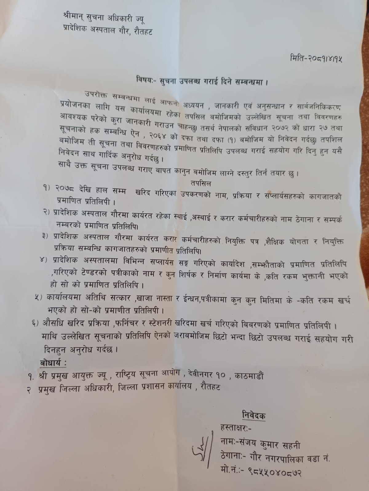 मधेश प्रदेश सरकार यसमा गम्भिर भई प्रादेशिक अस्पताल गाैरको अनियमितता छानबिन गराउनु पर्ने देखिन्छ ।