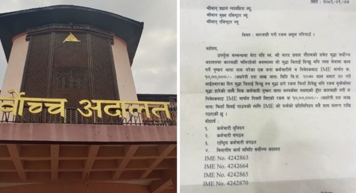 अदालतका कर्मचारीले मुद्दा जिताउन १० लाख लिए, प्रधान न्यायाधीशलाई निवेदन