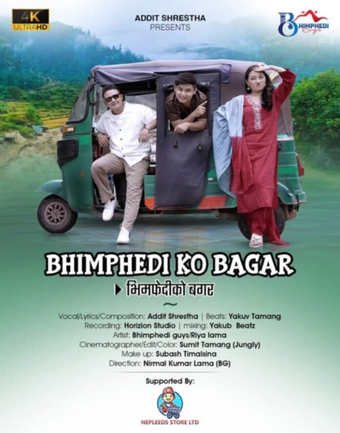 काठमाडौं । संगीतकार अदित श्रेष्ठको गीत ‘भिमफेदीको बगर’ को म्युजिक भिडियो सार्वजनिक भएको छ । शनिबार सार्वजनिक गरिएको म्युजिक भिडियोमा अदित श्रेष्ठको शब्द र स्वर रहेको छ । सो गीतमा याकुब तामाङले सङ्गीत संयोजन गरेका छन् । होरिजोन रेकर्डिङ स्टुडियोमा रेकर्ड भएको उक्त गीतमा याकुब विटस्ले मिक्सिङ गरेका हुन् । म्युजिक भिडियोमा निर्मलकुमार लामाको निर्देशन रहेको छ भने सुमित तामाङले छायाङ्कन र सम्पादन गरेका हुन्। श्रेष्ठको शब्दमा रहेको यो गीतमा कलाकार भने भिमफेदी गाइज र रिया लामा रहेकी छन् । यस म्युजिक भिडियोमा प्रेममिल जोडीको माया पिरतीका खट्टामिठा विभिन्न क्षणहरूलाई प्रस्तुत गरिएको छ । श्रेष्ठले सानै उमेरदेखि गायन क्षेत्रमा आफूलाई रुची भएको हुनाले यो दोस्रो गीत तथा म्युजिक भिडियो बजारमा सार्वजनिक गर्न सफल भएको बताउनुभएको छ । उहाँको यो भन्दा पहिला जुनेली रात भन्ने म्युजिक भिडियो पनि आएको थियो जुन स्रोताहरुले धेरै नै माया र मन पराइ साथ दिनुभएको हुनाले यो “भिमफेदीको बगर”लाई त्यसरी नै माया र साथ दिन आग्रह गर्दै आगामी दिनमा फरक खालका विभिन्न गीत सङ्गीत रेकर्ड गर्ने र म्युजिक भिडियो निर्माण कार्यलाई निरन्तरता दिने श्रेष्ठले बताउनुभयो ।