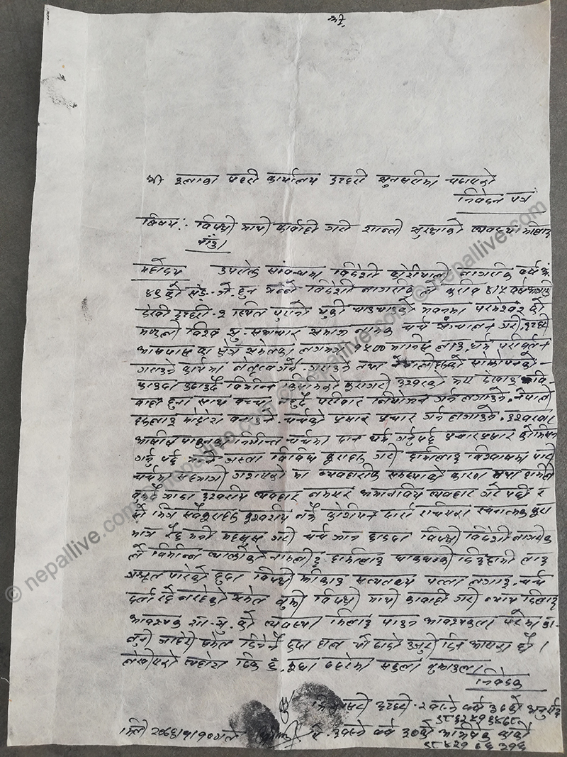 भोलिपल्ट मंगलबार निवेदन दिन पुन: इलाका प्रहरी कार्यालय पुगेका पीडिततलाई प्रहरीले निवेदन नै दर्ता नगराई फर्काइदिएको छ। ‘कि मिलेमतो गर्नुस्, नभए अदालत जानुस्’ भन्दै प्रहरीले धक्की दिएको पीडितहरुले गुनासो गरे।