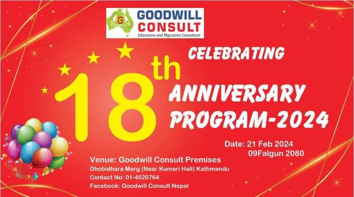 काठमाडौँ । गुडविल कन्सल्टले आफ्नो १८ औं वार्षिकोत्सव मनाएको छ ।