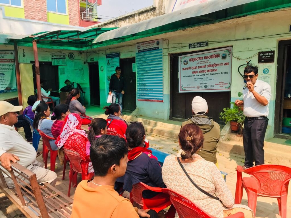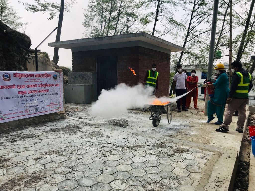 आगलागी, यसका कारणहरु, नियन्त्रणका उपायहरुका बारेमा सैद्धान्तिक तथा व्यवहारीक ज्ञान दिइएको अभिमुखिकरण तथा अभ्यास प्रदर्शनमा आगलागी भएको अवस्थामा स्थानीय साधन श्रोतको प्रयोग गरी आगलागी नियन्त्रण गर्ने उपायका साथै फाइर एक्सटिंगुसरको प्रयोगका बारेमा पनि अभ्यास गराइएको थियो ।
