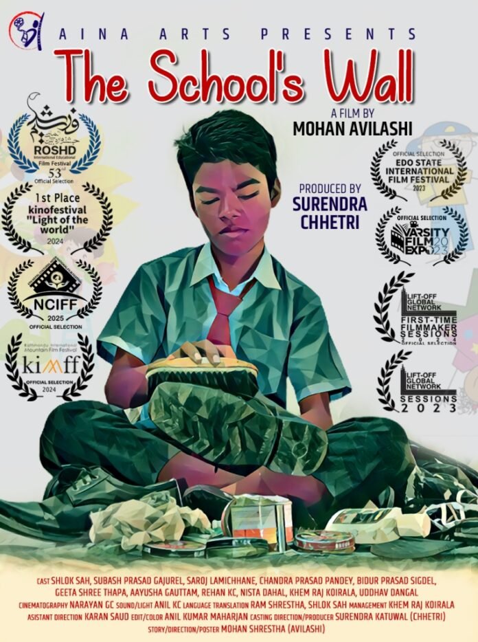 बालमनोविज्ञानमा आधारित लघुचलचित्र ‘द स्कुल वाल’ यसअघि रसियाको किनो चलचित्र महोत्सवको फाईनलमा पनि विजेता बनेको थियो । नाइजेरियाको इडो स्टेट इन्टरनेशनल फिल्म फेस्टिभल, इरानको रोशड इन्टरनेशनल एजुकेशन एण्ड साईन्टिफिक फिल्म फेस्टिभल, जिम्वावेको भर्सिटी फिल्म एक्स्पो, इटालीको वर्क एण्ड इन्टरप्राइजेज फिल्म फेस्टिभल अवार्ड, इजिप्टको पोर्ट सेड फिल्म फेस्टिभल, ब्राजिलको फेस्टिभल द सिनेमा स्टुडेन्टि द ग्युबा, अमेरिकाको स्मलरिग्स अवार्ड र बेलायतको लिफ्ट अफ फिल्ममेकर सेसन्स र फस्ट टाईम फिल्म मेकर सेसन्समा छनोट भएको थियो । ‘द स्कुल वाल’ नेपालको इन्टरनेशनल माउण्टेन फिल्म फेस्टिभल, थाहा चलचित्र महोत्सव, नेपाल इन्टरनेशनल फिल्म फेस्टिभल, नेपाल अफ्रिका फिल्म फेस्टिभलमा समेत छनोट भएको छ ।