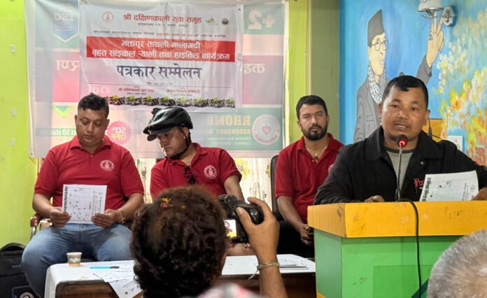 भक्तपुर । भक्तपुरको ताथलीमा शनिबार (७ असार) वृहत् साईकलिङ र हाईकिङ हुने भएको छ । चाँगुनारायण नगरपालिका वडा नं. ९ ताथलीको श्री दक्षिणकाली युवा समूहले सो कार्यक्रम गर्ने भएको हो ।