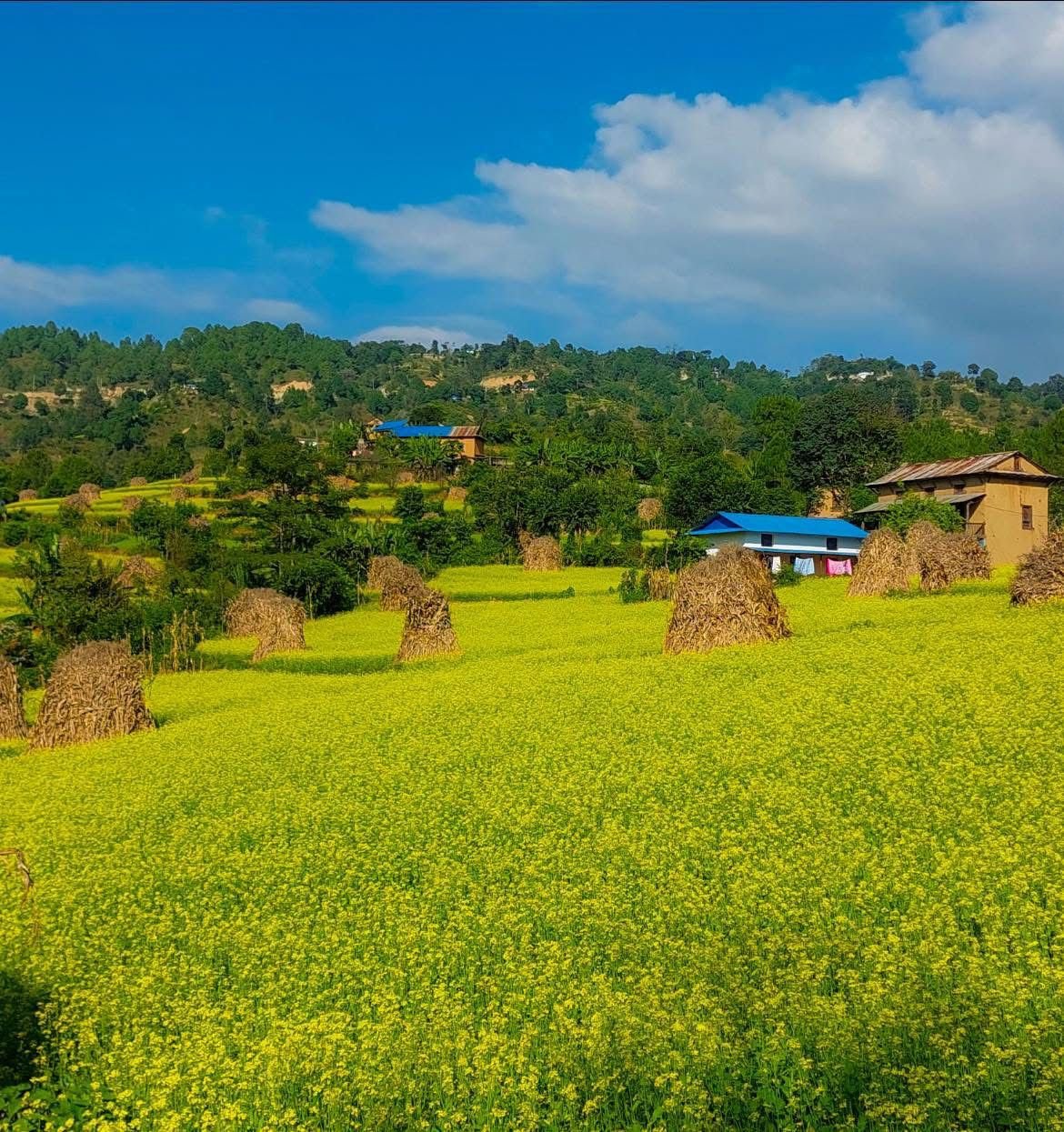 तोरीका पहेँला फुलहरूले गाउँको हावामा हरियाली र सुगन्ध फैलाइरहेका छन्। प्रकृतिको यो सुन्दर उपहारले कृषिप्रधान जीवनशैलीको सौन्दर्यलाई झल्काउँछ।