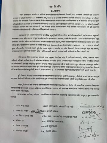 वहाँहरुले निजामती सेवा सम्बन्धी वर्त्तमान विधेयक फिर्ता लीई सर्वपक्षीय संयन्त्र निर्माण गरी प्रशासनिक संरचनाका विज्ञहरुसंग परामर्शल लीई संविधानको व्यवस्था, संघीयता, समावेशिताका भावना र मर्म आधारित कर्मचारीतन्त्र निर्माणको निमित्त नयाँ विधेयक ल्याउन माघ गरेका छन् ।