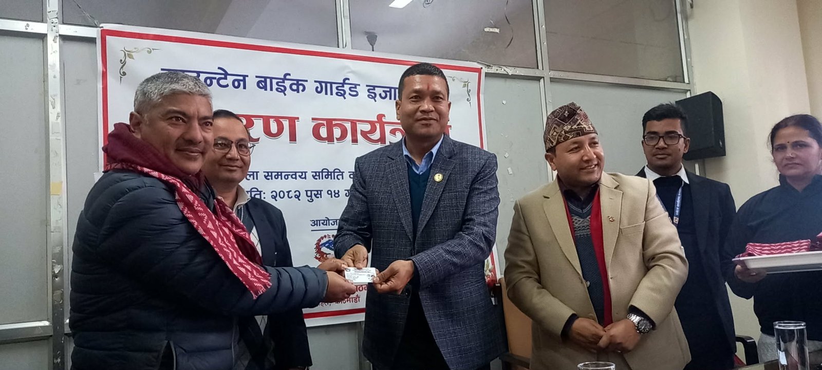 नेपालमै पहिलो पटक माउन्टेन बाइक गाइडलाई आधिकारिक लाइसेन्स वितरण