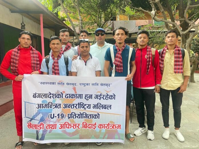 काठमाडौं । मित्रराष्ट्र बंगलादेशको राजधानी ढाकामा हुने भलिबल प्रतियोगीतामा सहभागी खेलाडी तथा प्रशिक्षक टोलीको बिदाई भएको छ ।