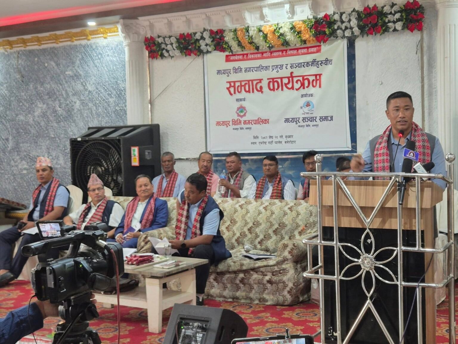 मध्यपुर थिमि नगरपालिकाले तीन वर्षे कार्यकालको प्रगति विवरण बुधबार सार्वजनिक गरेको छ। मध्यपुर सञ्चार समाजद्वारा आयोजित “नगरप्रमुख र सञ्चारकर्मीबीचको संवाद” कार्यक्रममा नगरप्रमुख सुरेन्द्र श्रेष्ठले उपप्रमुख विजयकृष्ण श्रेष्ठ, वडा अध्यक्षहरू, प्रमुख प्रशासकीय अधिकृत तथा महाशाखा प्रमुखहरूको उपस्थितिमा १५ पृष्ठ लामो विवरण सार्वजनिक गर्नुभयो।