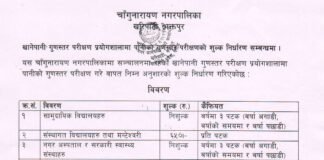खानेपानी गुणस्तरको परीक्षण शुल्क निर्धारण
