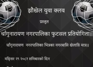 चाँगुनारायण । एक लाख पुरस्कार सहित चाँगुनारायण नगरपालिका स्तरीय फुटसल प्रतियोगिता हुने भएको छ ।