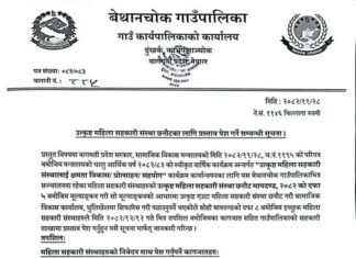 बेथानचोक गाउँपालिकाको आग्रह : उत्कृष्ट महिला सहकारी संस्था छनोटका लागि प्रस्ताव पेस गर्न आह्वान